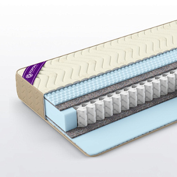 Модель основана на блоке независимых пружин TFK 500. С обоих сторон матрас имеет одинаковые наполнители. Жёстким наполнителем служит хлопковый войлок 10 мм, верхним слоем лежит высокоэластичная массажная пена 20 мм. Матрас в чехле на выбор из трикотажа «Even», стеганный на синтепоне 300 г или жаккарда х/б «Aries», стеганный на синтепоне 200 г. Расширенная гарантия на пружинный блок 5 лет. Весовая нагрузка – до 120 кг, высота матраса – 24 см.