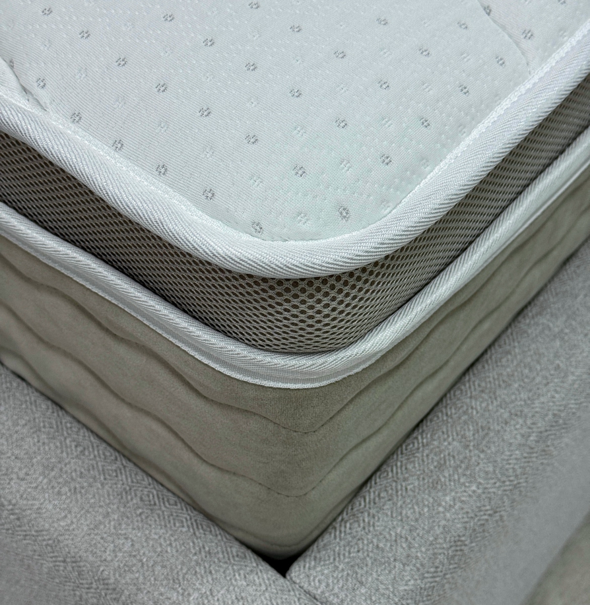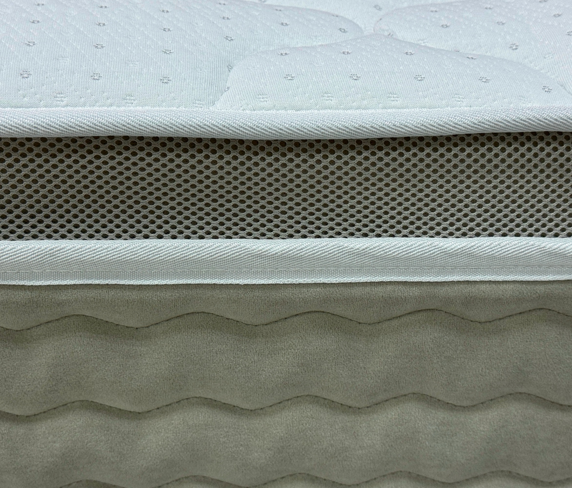 Бурлет из мебельного велюра «Teddy» - Бурлет матраса изготовлен из плотного износостойкого велюра «Teddy» цвета 005. Этот материал обладает высокой устойчивостью к истиранию (100 000 циклов по тесту Мартиндейла) и не подвержен деформации, что позволяет матрасу надолго сохранять первоначальный вид. Велюр легко очищается от самых сложных загрязнений, что делает его практичным в использовании.